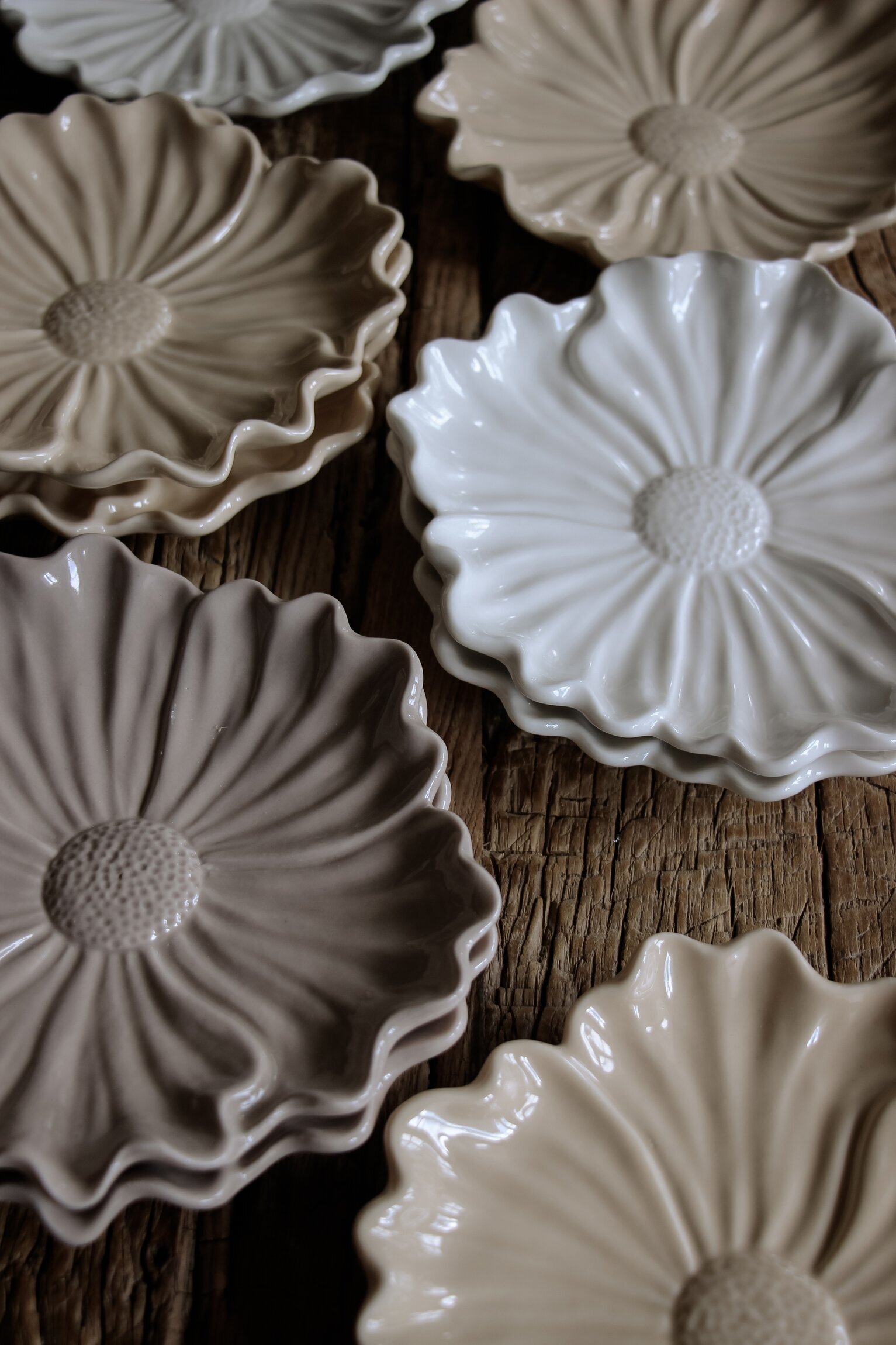 Blomstra-faten är ljuvliga skapelser i keramik, formade med inspiration från naturens egna blomblad. Varje fat har en levande känsla och unika detaljer som förvandlar det dukade bordet till något alldeles extra.