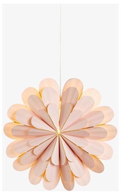 Hängande julstjärna Marigold med blomformad pappskärm i en vacker rosa nyans, medföljer en 3,5 meter vit kabel med strömbrytare.