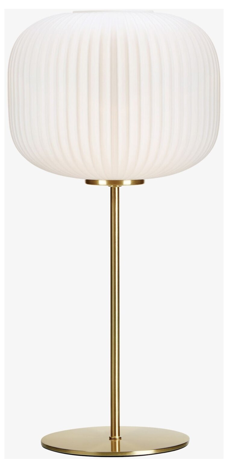 Den övergripande färgpaletten av vitt och mässing ger lampan ett neutralt men ändå iögonfallande utseende, vilket gör den lätt att matcha med olika inredningsstilar. Detta gör bordslampan perfekt för placering i både traditionella och moderna hem.