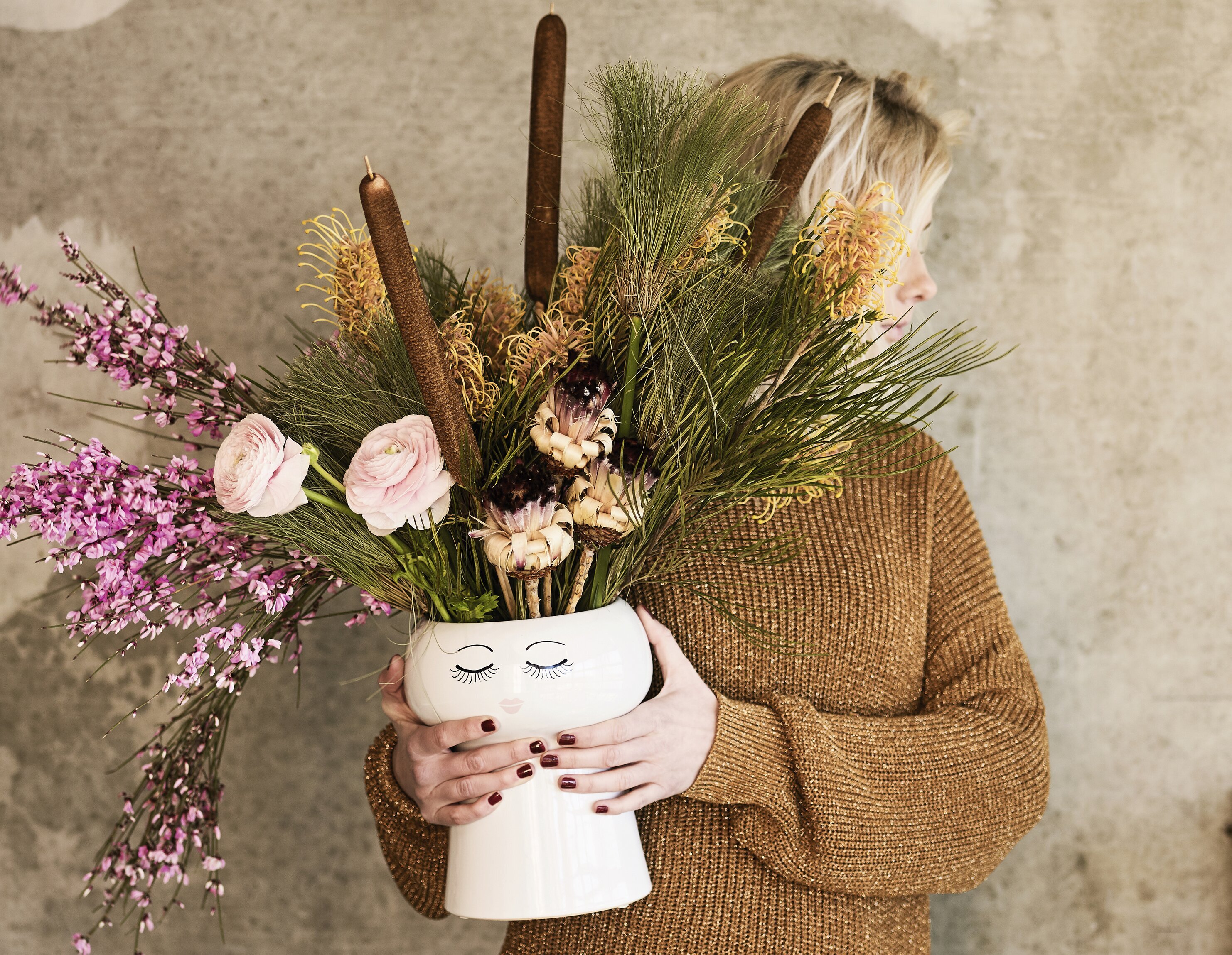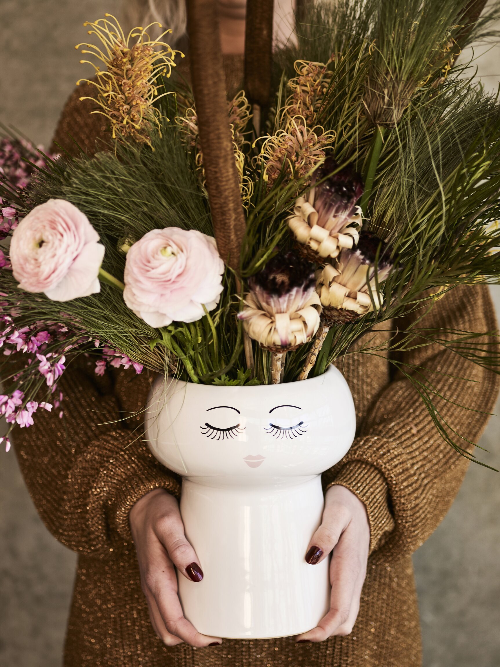 Stor & rejäl blomkruka på fot med ansikte från Miss Étoile.
