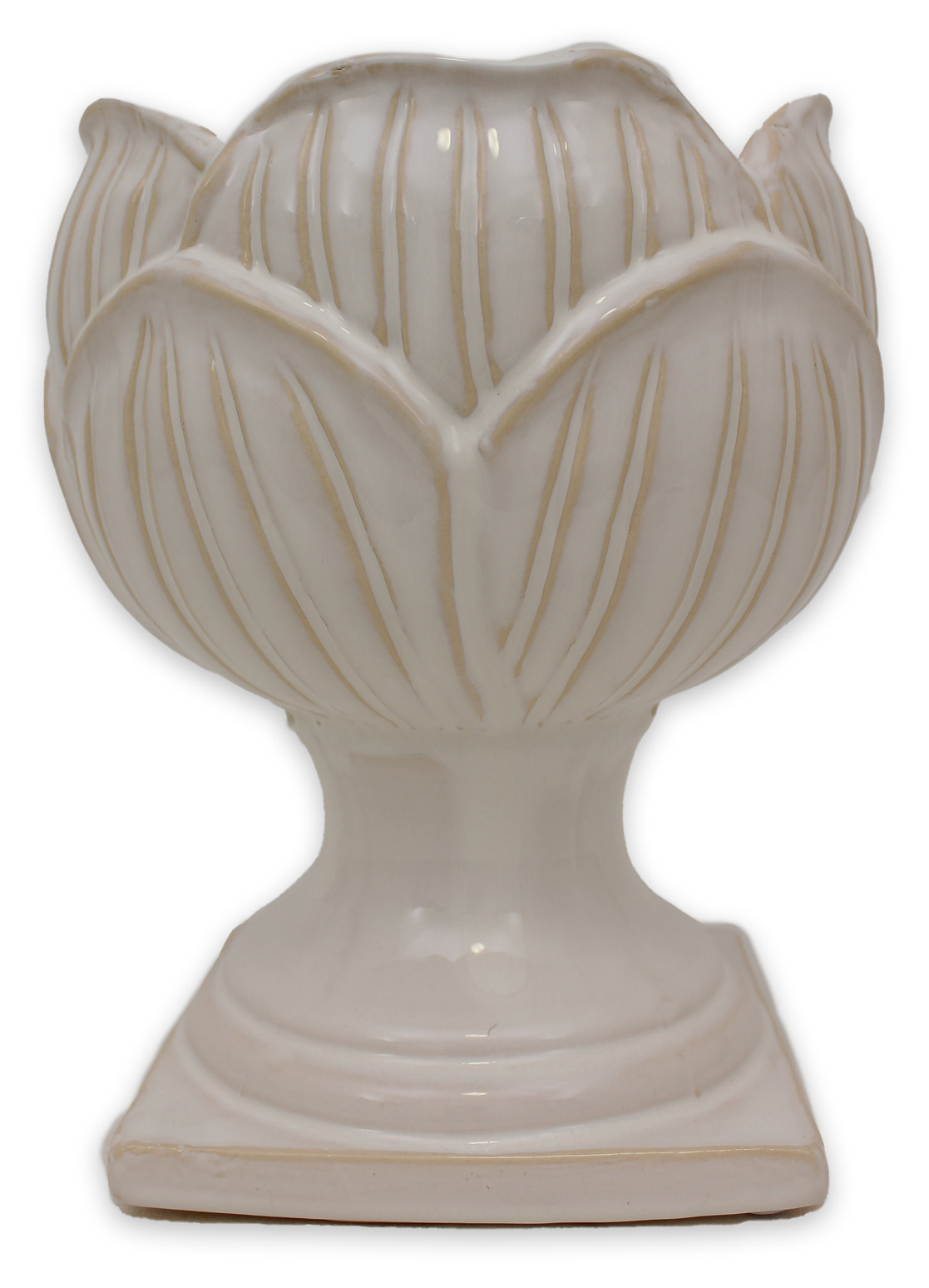 En vacker pokalkruka för inomhusbruk som kombinerar klassisk form med stilfulla detaljer. Den blombladsliknande strukturen gör den till en dekorativ inredningsdetalj i hemmet – perfekt för gröna växter, färgglada blommor eller som kreativ dekoration året runt.