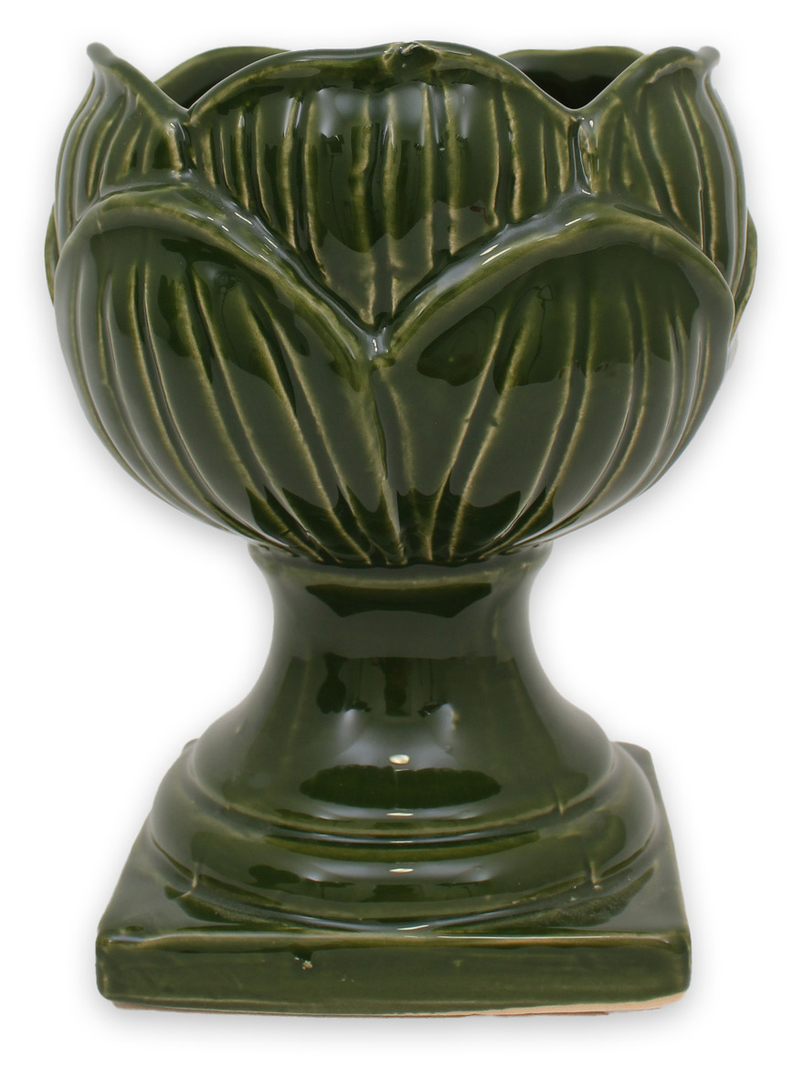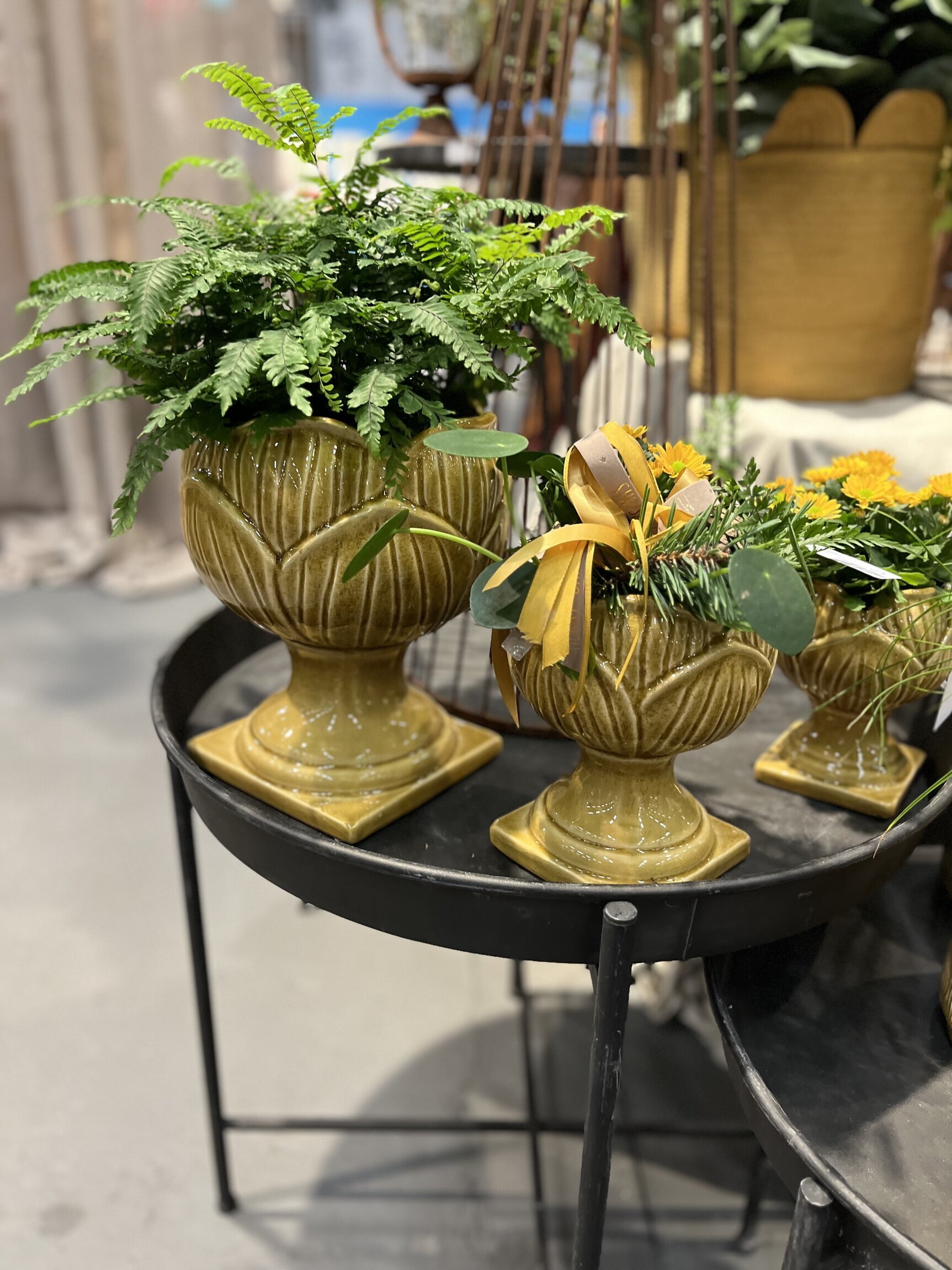 En vacker pokalkruka som kombinerar klassisk form med stilfulla detaljer. Den blombladsliknande strukturen gör den till en dekorativ inredningsdetalj i hemmet – perfekt för gröna växter, färgglada blommor eller som kreativ dekoration året runt.