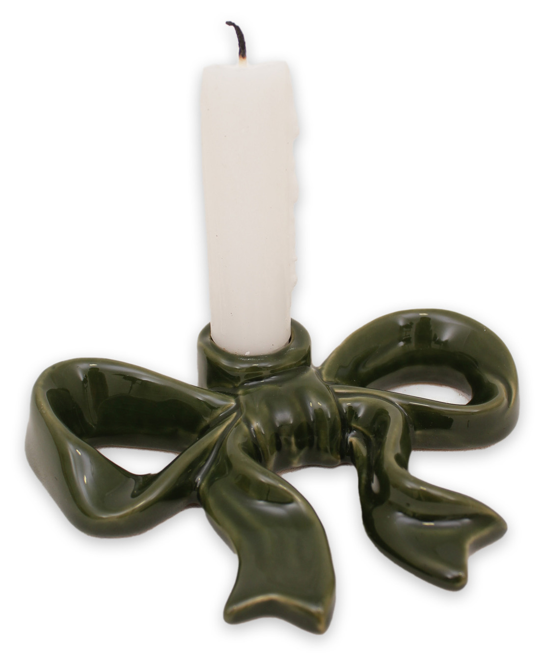 Ge hemmet en elegant och lekfull detalj med denna ljusstake i form av en rosett. Tillverkad i glaserad keramik, kombinerar den tidlös charm med modern design och blir en vacker blickfångare på bordet, i fönstret eller på hyllan. Den mjuka formen och den dekorativa rosetten gör att ljusstaken passar perfekt både till vardag och fest.