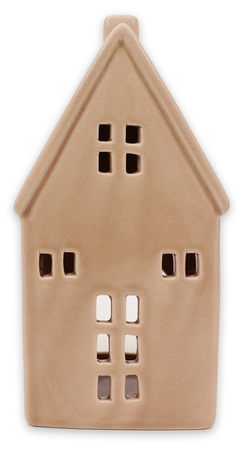 Charmig ljuslykta i form av ett hus som sprider ett varmt sken som lyser upp mörka kvällar. Med sin enkla design och stämningsfulla ljus passar den perfekt på bordet, i fönstret eller som en del av en mysig höstdekoration. Ett litet hus som gör höstens hemmakvällar ännu mer ombonade.