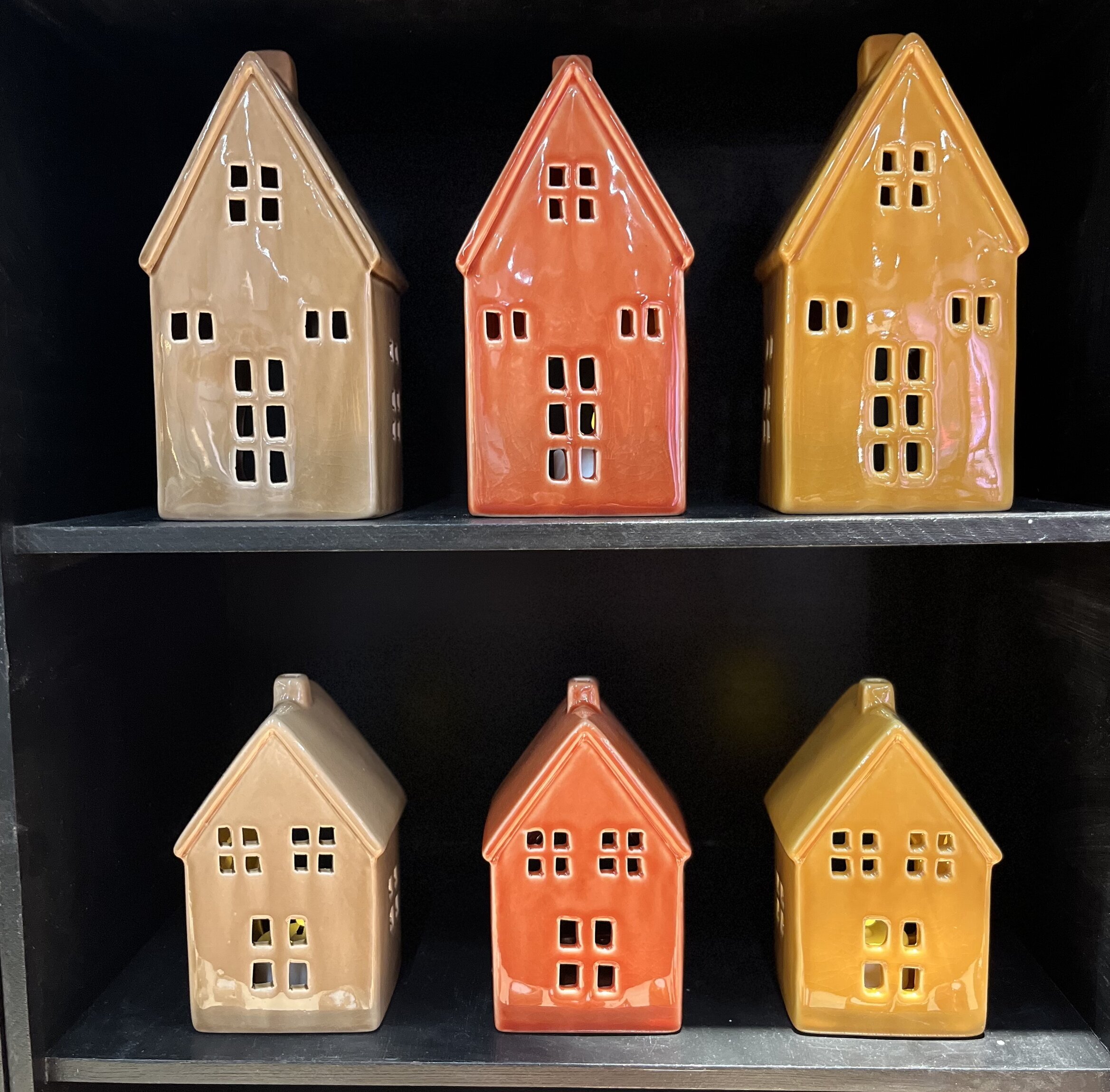 Charmig ljuslykta i form av ett rostrött hus sprider ett varmt sken som lyser upp mörka kvällar. Med sin enkla design och stämningsfulla ljus passar den perfekt på bordet, i fönstret eller som en del av en mysig höstdekoration. Ett litet hus som gör höstens hemmakvällar ännu mer ombonade.