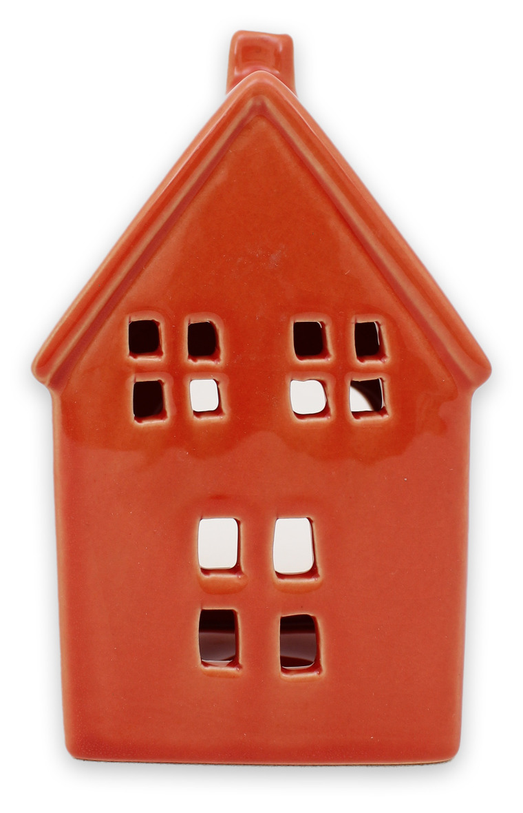 Charmig ljuslykta i form av ett rostrött hus sprider ett varmt sken som lyser upp mörka kvällar. Läs mer