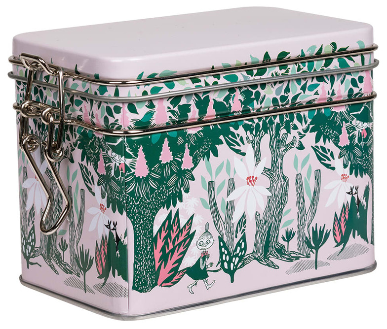 Den här lilla plåtburken är perfekt för löste eller tepåsar. Med ett tätt spännlock bevaras både smak och doft – samtidigt som det vackra motivet med Lilla My och den lummiga skogen gör burken till en fin detalj i köket.