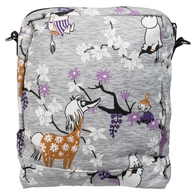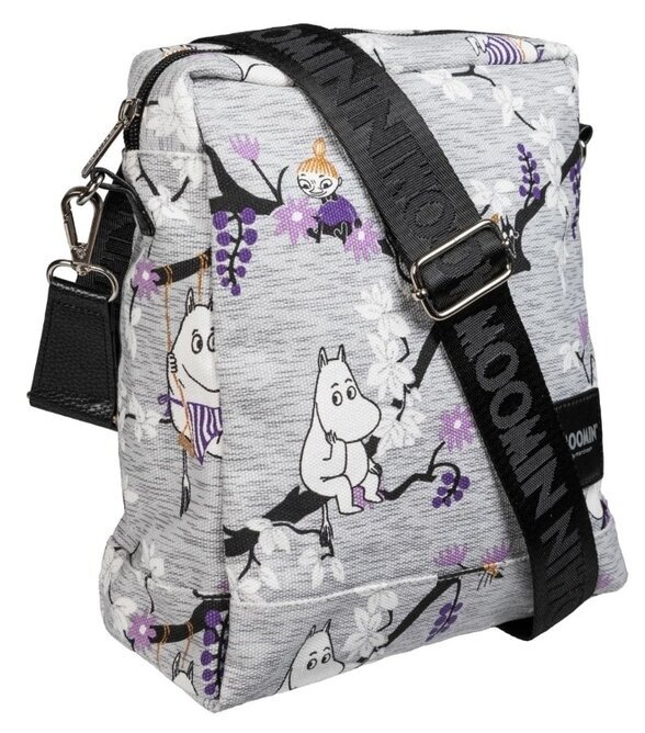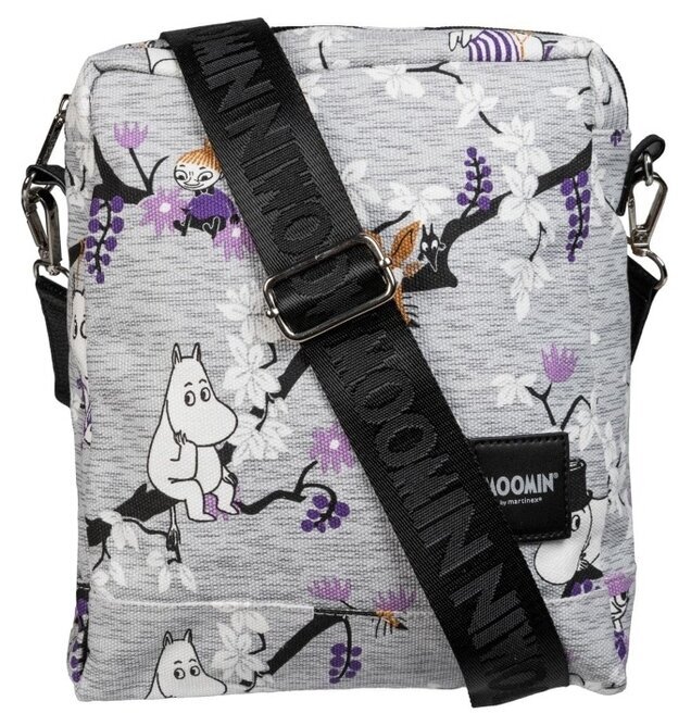 Den breda axelremmen är justerbar och pryds av en ton-i-ton Moomin-logga för en diskret men karaktärsfull detalj.