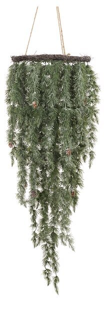 På bilden ser vi en dekorativ hängande arrangemang från varumärket Mr Plant, erbjuden av butiken Köpstaden.se. Detta dekorativa element, benämnt Dekoration Med Is, är ett konstverk som förmedlar en naturlig känsla till rummet. Arrangemanget är utformat i en hängande form som faller elegant nedåt med flera lager av vintergrönt material.