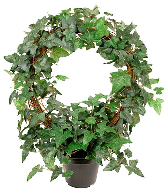 Den frodiga murgrönan är arrangerad i en välformad båge, vilket skapar en luftig cirkel av gröna blad. Bladen har en djup grön färg med ljusare ådror som ger dem en realistisk känsla. Detaljerna i bladen, med deras varierande storlek och form, bidrar till intrycket av en äkta växt och fångar ljuset på ett sätt som ger en livfull effekt.