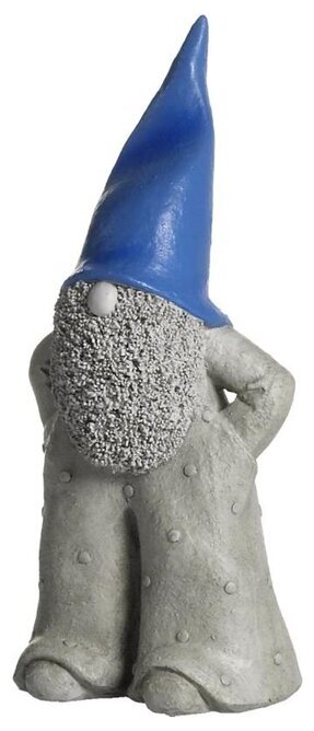Trädgårdstomte Elmer med blå luva & lurvigt skägg, en tidlös trädgårdsdekoration som även passar inomhus. Läs mer