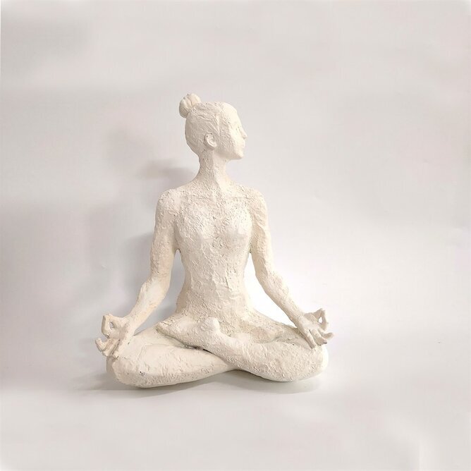 Vacker skulptur som har en rustik & genuin hantverkskänsla av en kvinna i yogaposition, finns i flera varianter. Läs mer