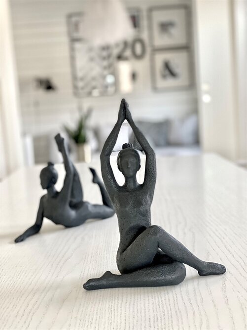 Vacker skulptur som har en rustik & genuin hantverkskänsla av en kvinna i yogaposition. En vacker inredningsdetalj som finns i flera olika utföranden.