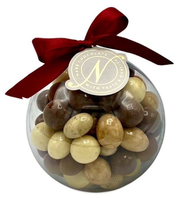 Häftig plexikula fylld med chokladdragerade nötter, mandel och majs. Perfekt klapp till julklappspelet. Läs mer