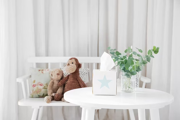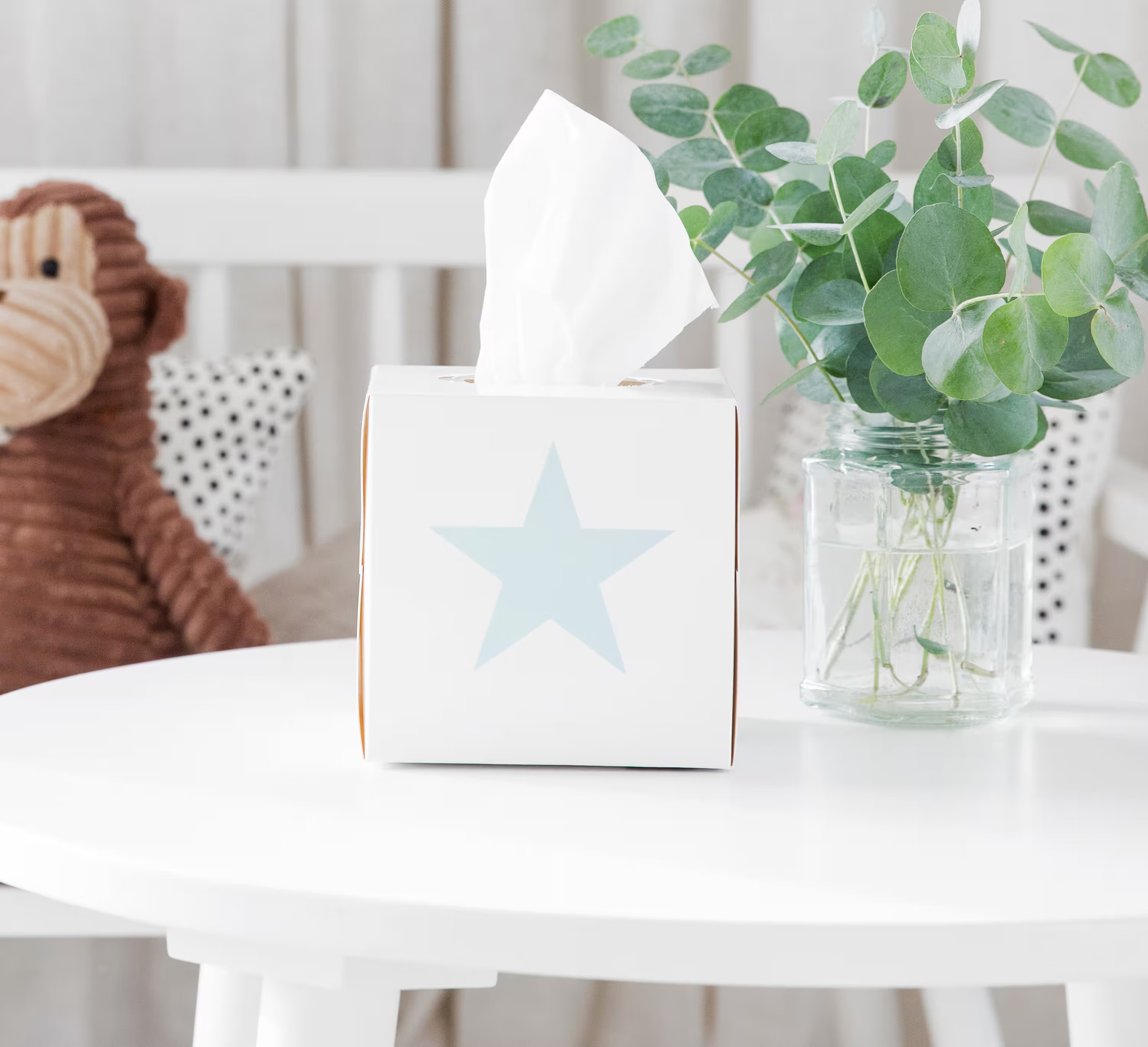 Snygg servettbox att låtas ha ståendes i köket, vardagsrummet, barnrummet, badrummet mm. Smidig att ha i husvagnen, båten eller sommarstugan. Servettboxen innehåller 100 stycken 2-lagers vita pappersnäsdukar som är FSC-cerifierade samt fria från klorin.