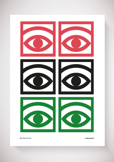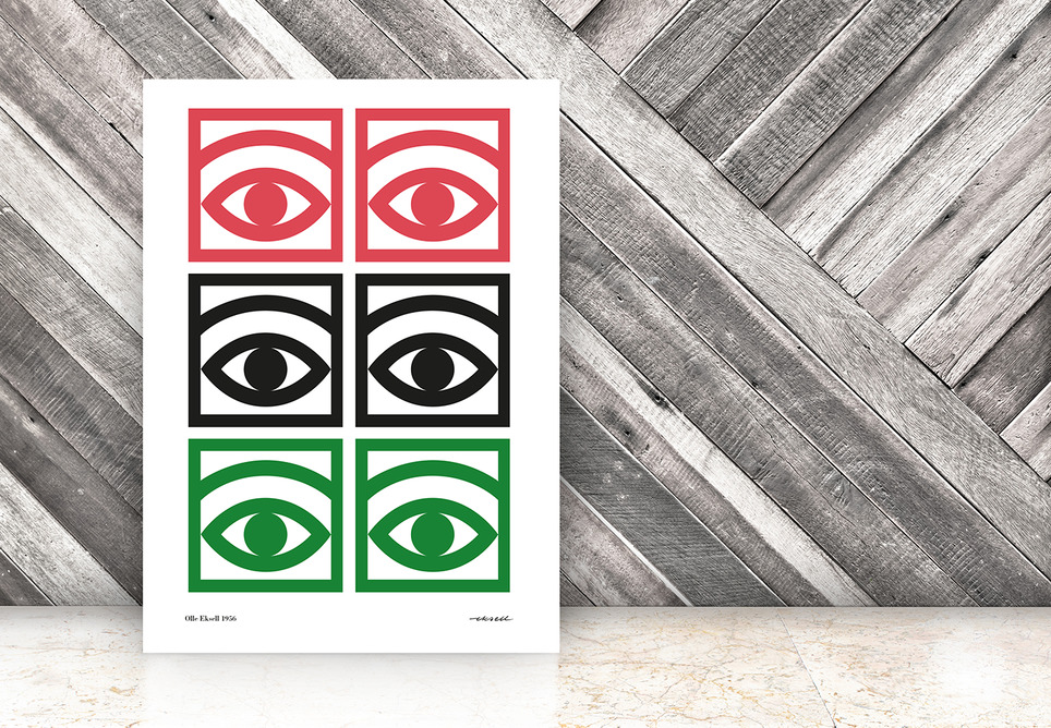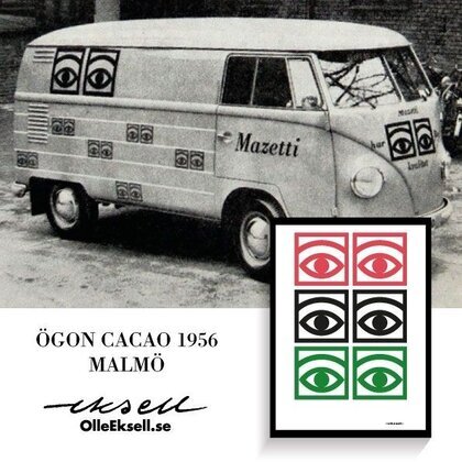 Olle Eksell, känd illustratör, skapade denna stora icon kakaoögonen 1956 och dessa ögon var en del i ett av Sveriges första designprogram som Olle utvecklade för det kända företaget Mazzetti. Planschen som är en riktig klassiker finns i ett flertal olika färger och är tryckt på 200 g obestruket papper. Levereras i kartong.