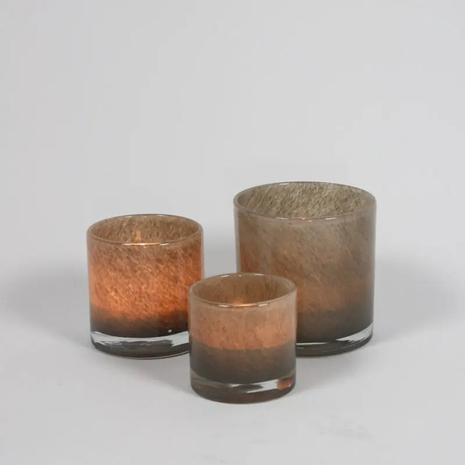 Vacker ljuslykta tillverkad av munblåst glas i en fin brun/grå (mullvad) nyans. Ljuslyktan har en tydligt markerad kant nedtill samt vackra meleringar. Varje ljuslykta är unik i sitt utförande vad gäller storlek, färg & form. Från Olsson & Jensen.