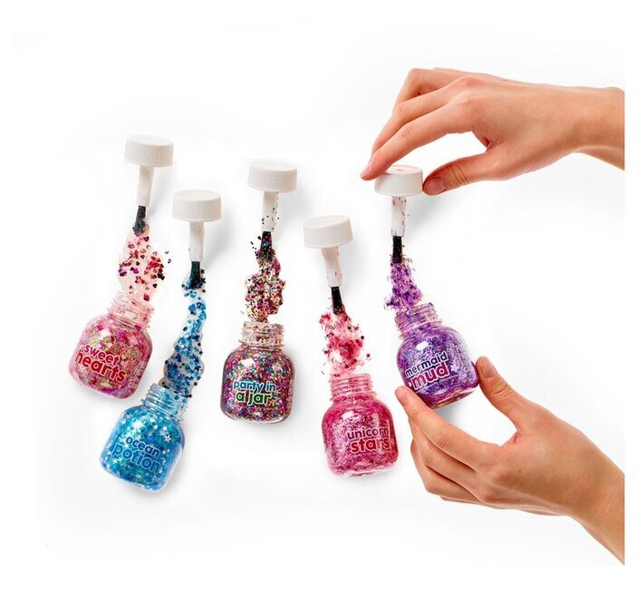 Söta små burkar innehållande glitterlim med pensel, finns i flera olika färger. Läs mer