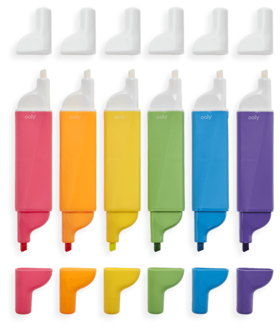 Förpackning om 6 stycken tuschpennor/överstrykningspennor i färgglada nyanser som även är suddbara. Färglägg med ena sidan, sudda med den andra, passar fint både i skolan, på jobbet eller hemmavid.
