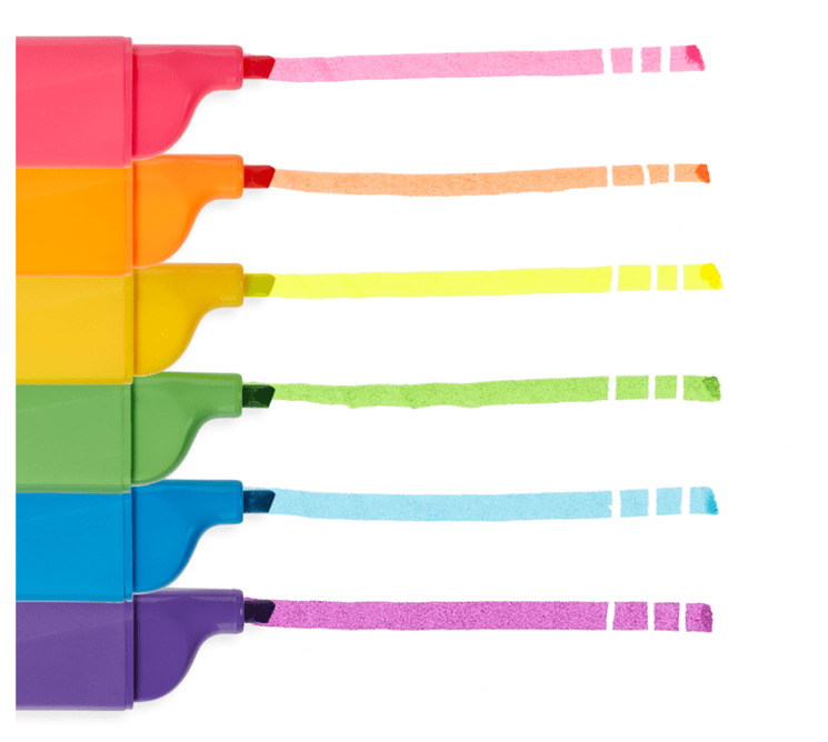 Förpackning om 6 stycken tuschpennor/överstrykningspennor i färgglada nyanser som även är suddbara. Läs mer