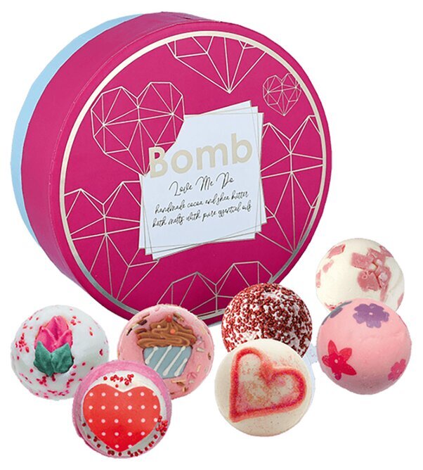 Lyxig presentförpackning innehållande 7 stycken väldoftande kakao- och sheasmörbaserade badbomber. En uppskattad Alla hjärtans dags present.