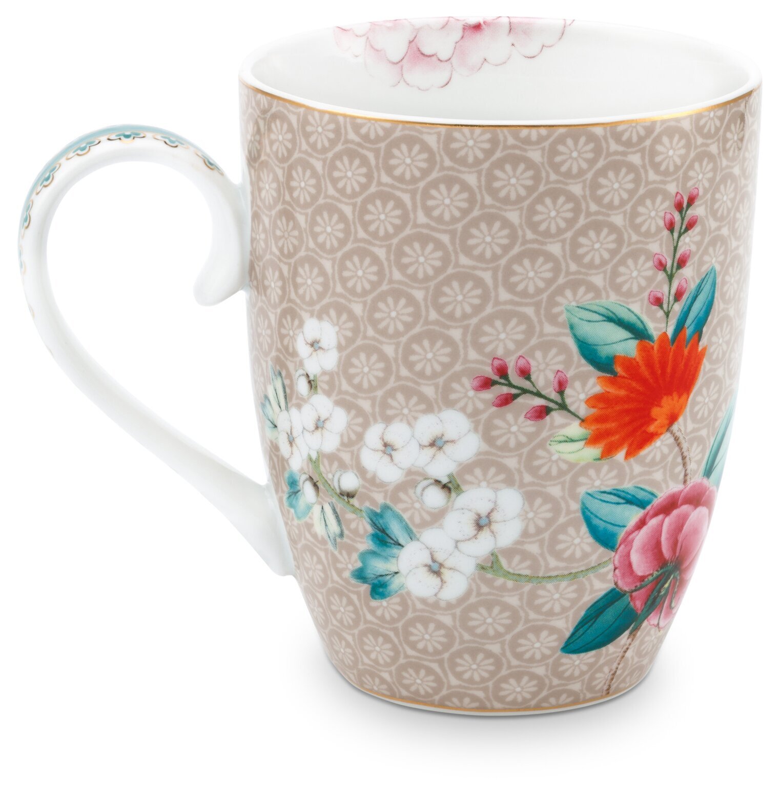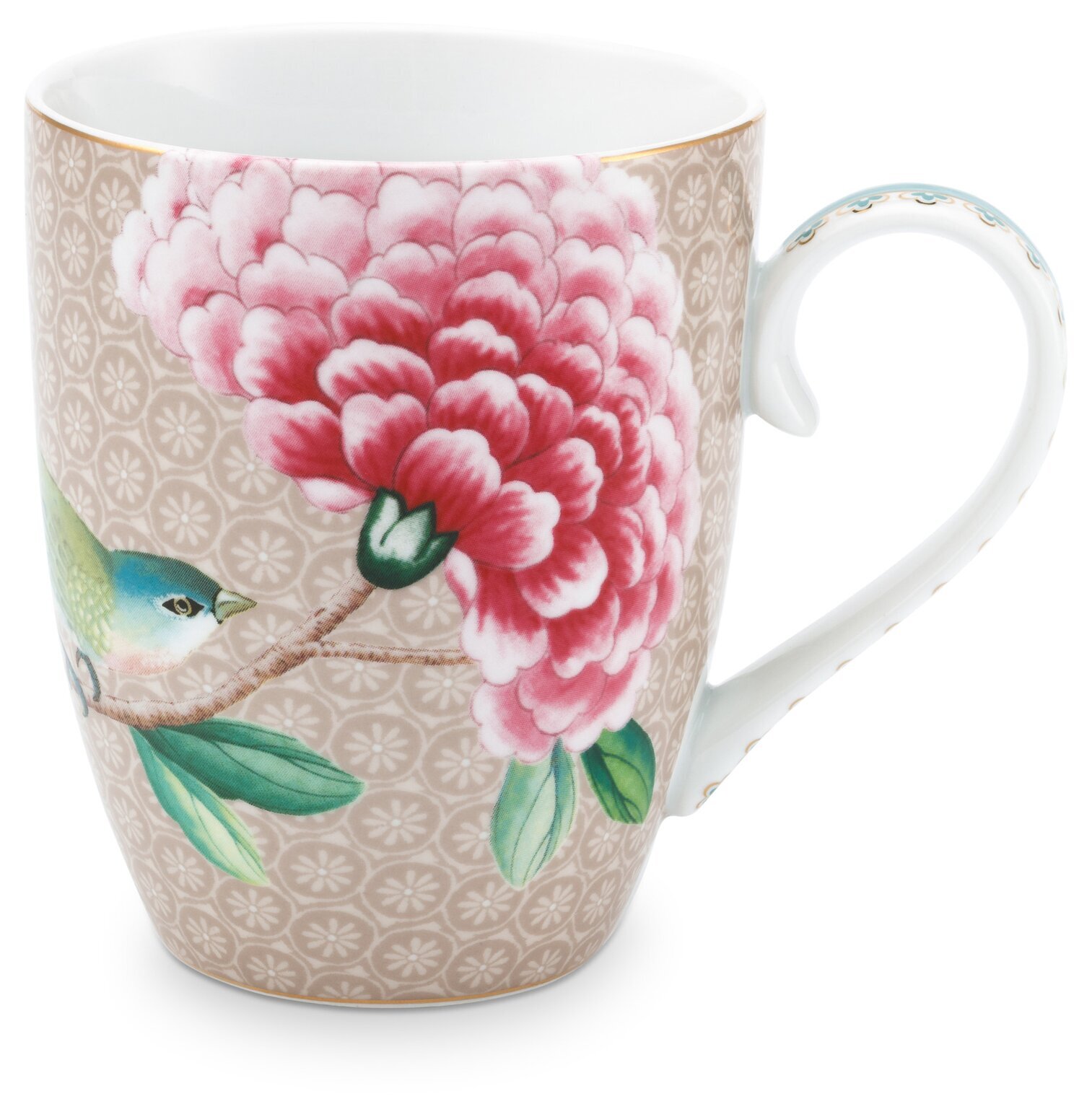 Vacker porslinsmugg som pryds av exotiska blommor och gulddekor från PiP Studio. Läs mer