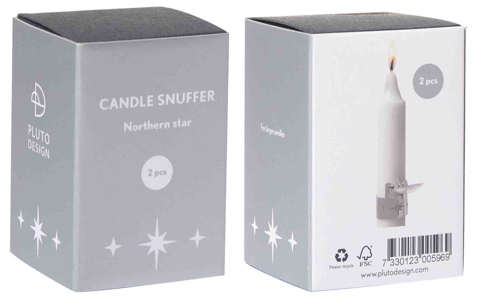 Ljussläckare som fästs på kronljus & som släcker lågan vid en höjd som du själv valt. Ljussläckarna är dekorerade med stjärnor. En omtänksam & uppskattad gåva till någon du bryr dig om.