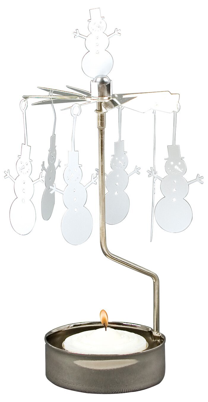 Detta änglaspel föreställer barnens bästa kompis under vinterhalvåret, nämligen snögubben. I en icke smältbar version. Den varma luften från värmeljuset driver runt propellertaket så det snurrar. Mått: 16,5 × 6,5 cm. Material: Metall. värmeljus medföljer.
