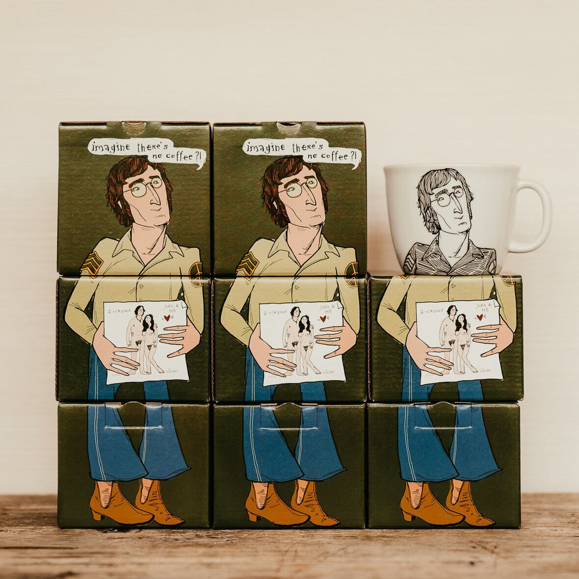 Porslinsmugg med motiv av John Lennon, muggen rymmer ca 350 ml & finns i flera olika utföranden.