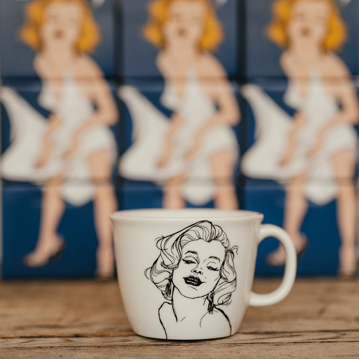 Porslinsmugg med motiv av Marilyn Monroe, muggen rymmer ca 350 ml & finns i flera olika utföranden.
