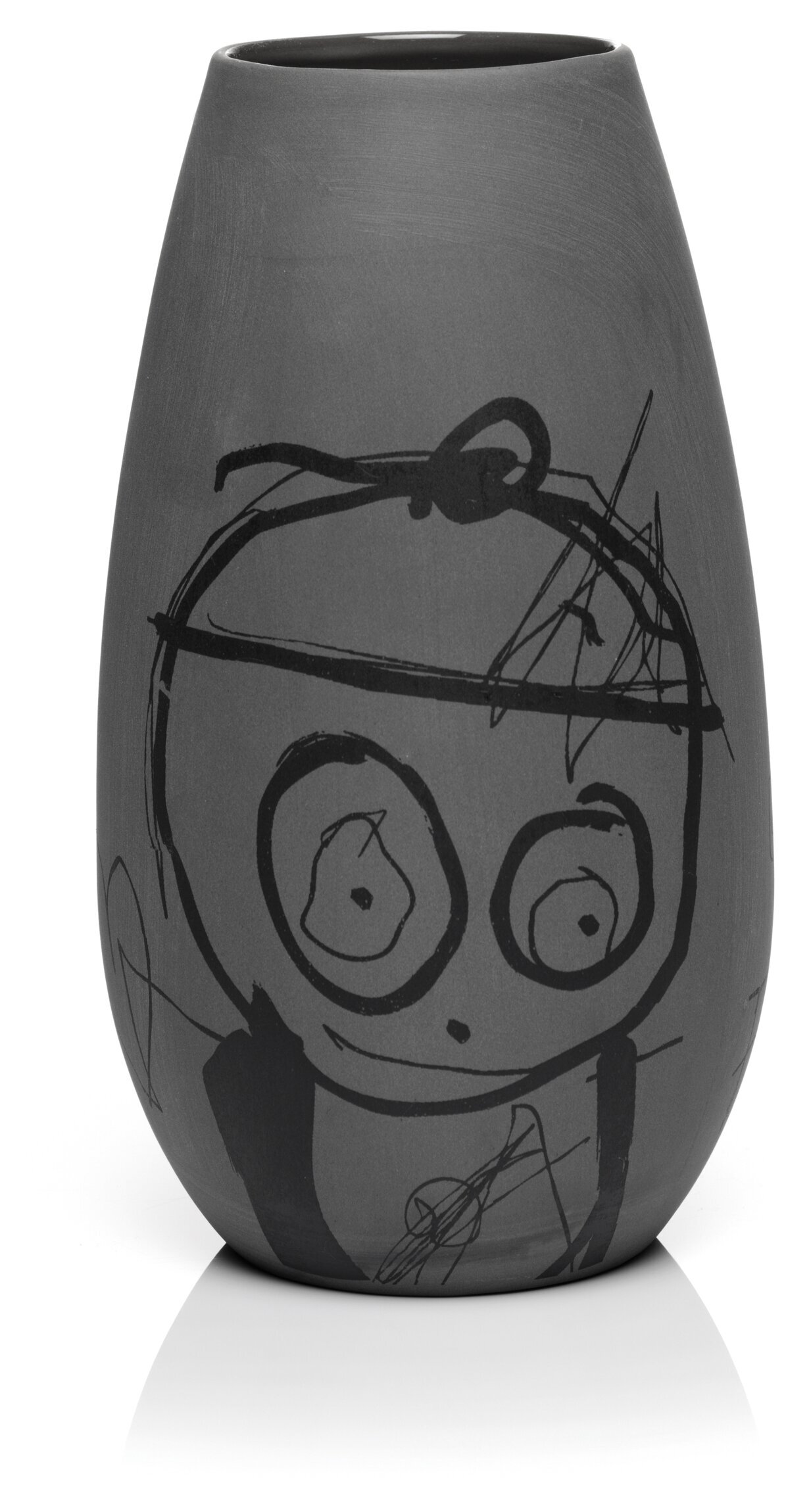 Snygg vas från Poul Pavas nya serie Great Guys med olika motiv på fram & baksida. Vasen som finns i flera olika storlekar är tillverkad i stengods och har en vacker ruff utsida. Detta blir ett riktigt blickfång med vackra blommor eller granris.