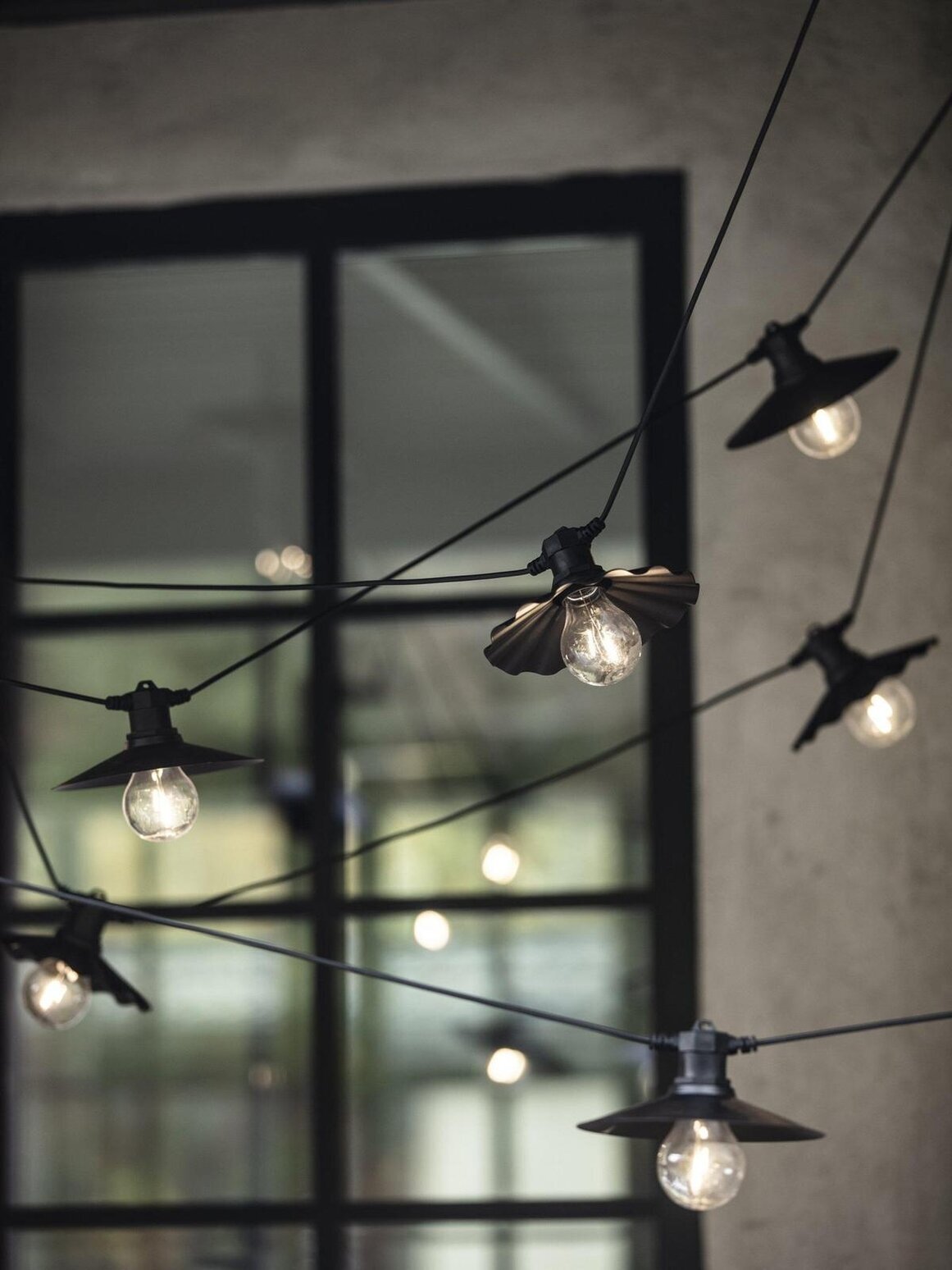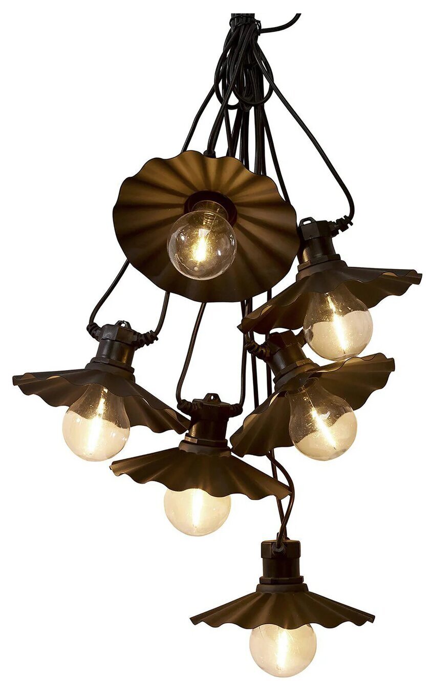 Dekorativ ljusslinga med vågformade skärmar för utomhusbruk, levereras med 6 stycken LED ljuskällor, ej utbytbara. Lamporna kan fästas på altanen, pergolan eller i uterummet & skapar en mysig & ombonad känsla.