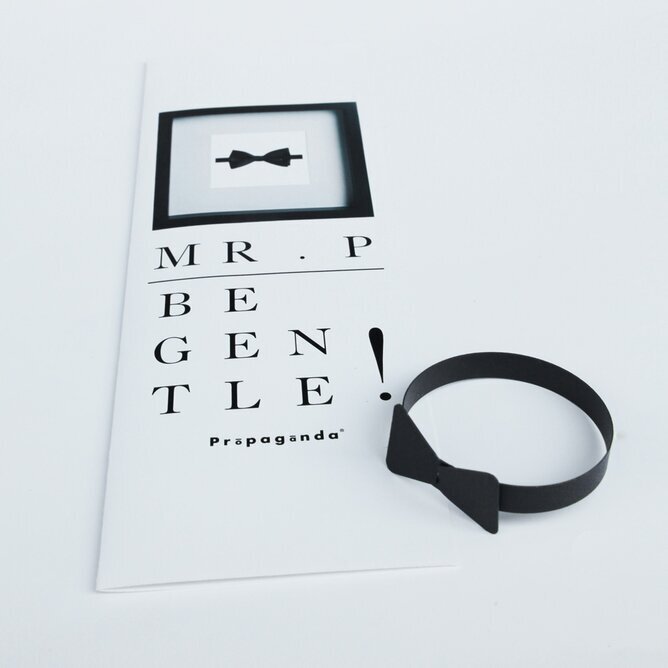 Det är tydligt att produkten "Fluga till Mr.P One Man Shy" från Propaganda inte bara fyller en funktionell roll, utan också står som ett exempel på smart och kreativ produktdesign. Bilden avslöjar en smakfull balans mellan humor och stil, vilket gör den till en passande illustration för den typ av unika produkter som Köpstaden.se är kända för att erbjuda.