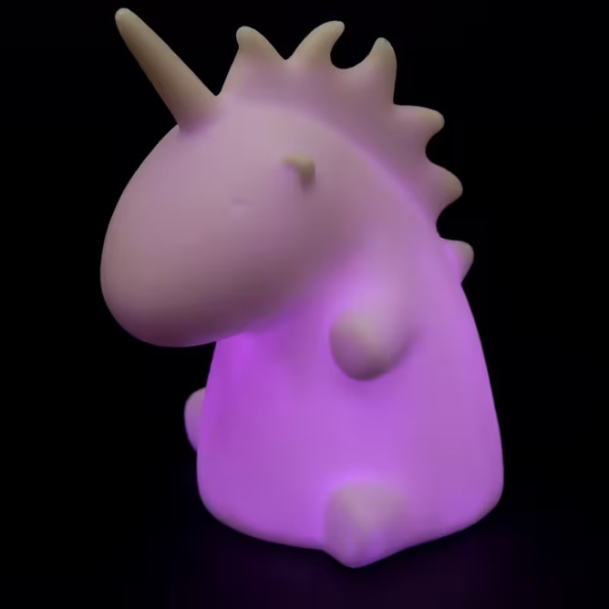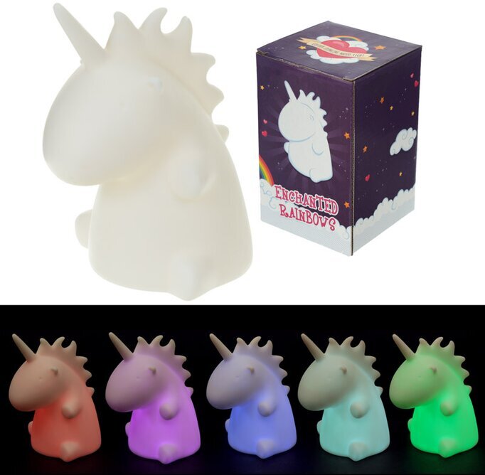 Söt nattlampa i form utav en enhörning som skiftar i färg. Kräver 1 styck CR2032 batteri som medföljer produkten.