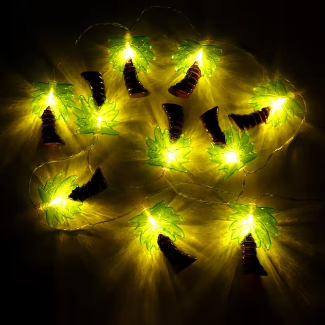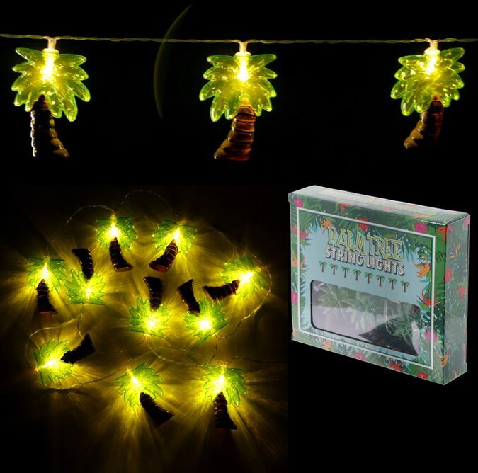 Ljusslinga med färgglada palmer, passar perfekt till kalas & fest med sommartema. Kräver 2 stycken AA-batterier, medföljer ej.