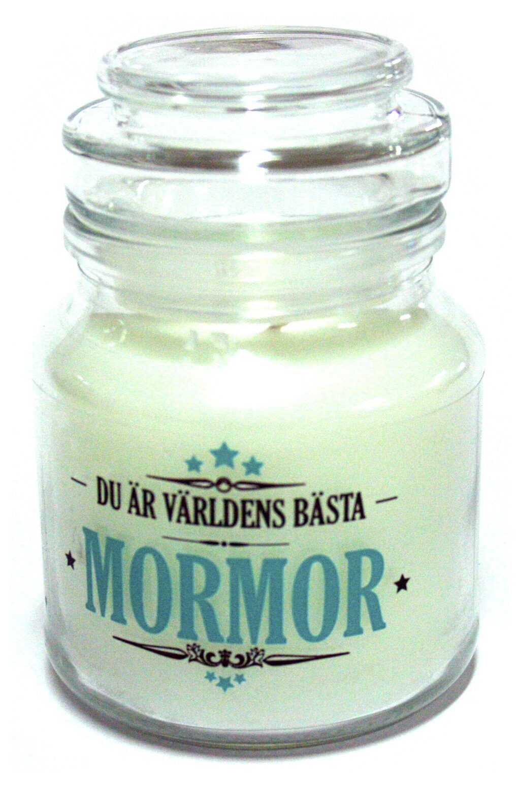 Vackert ljus i glasburk med lock utan doft. Uppskattad present, både att ge & få. Ljusets budskap "Du är världens bästa mormor" Mått: 10 x Ø 7 cm. Läs mer