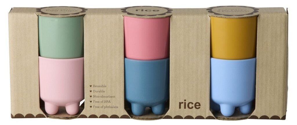 Starta dagen med färg och glädje. Det här setet med sex äggkoppar från Rice kommer i lekfulla pastell- och starka färger som piggar upp frukostbordet. De är tillverkade i slitstark melamin, fria från BPA och ftalater, och kan användas om och om igen. Perfekta för både vardagsfrukost och helgens mysiga brunch.