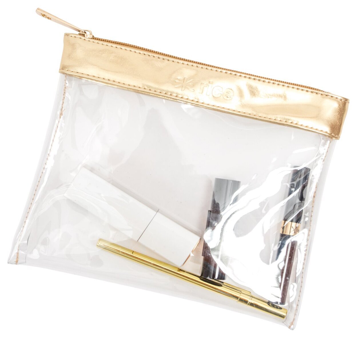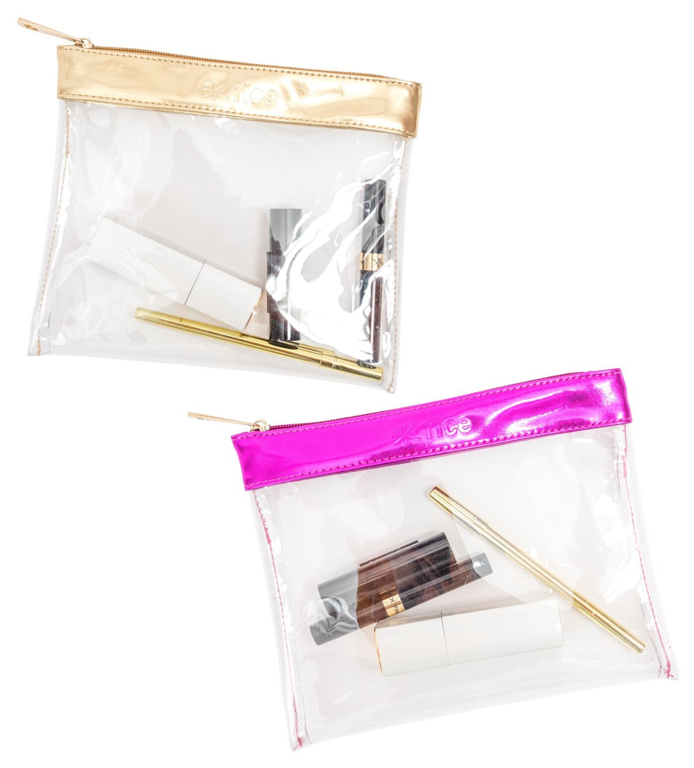 Transparenta påsar till flygresan för exempelvis smink & mediciner. Finns i med rosa & guldkant.