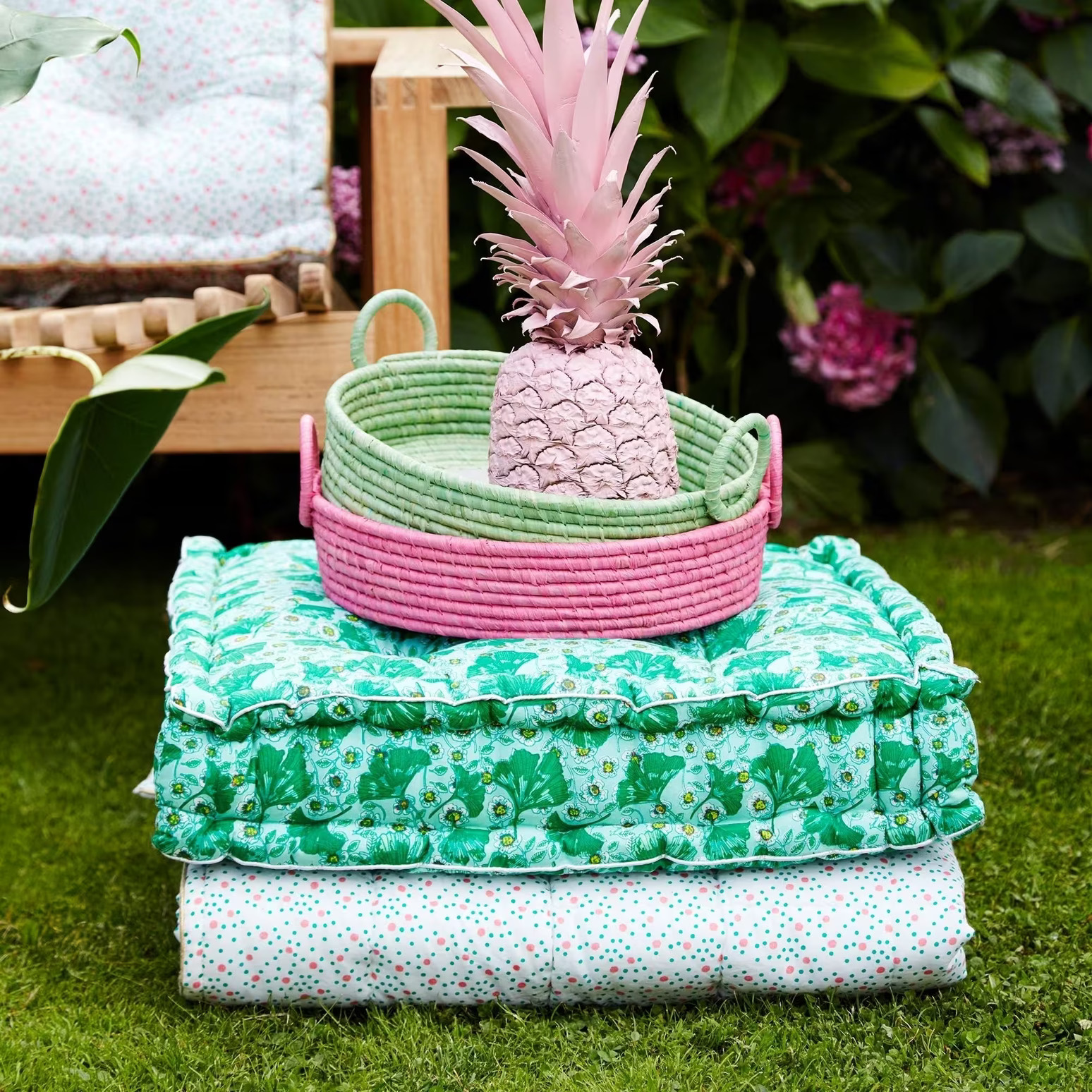 Snygg golvkudde som kan användas både inne- som utomhus. Smidig att bära då den har ett handtag. Kan användas direkt på golvet eller som dyna till utemöblerna. Läs mer