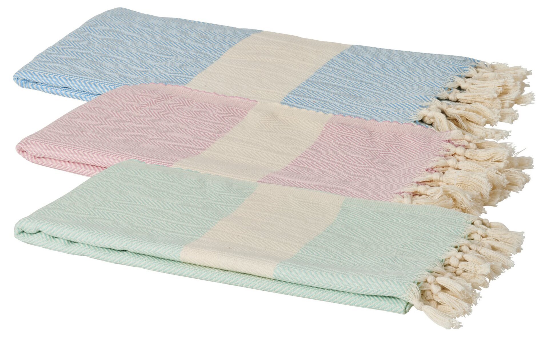 Mjuk & tunn hamam-handduk, fiskbensvävd i 100% bomull med knutna tofskanter. Använd som badhandduk, picknickfilt, sjal, duk, pläd mm. Finns i 3 olika färger. Läs mer