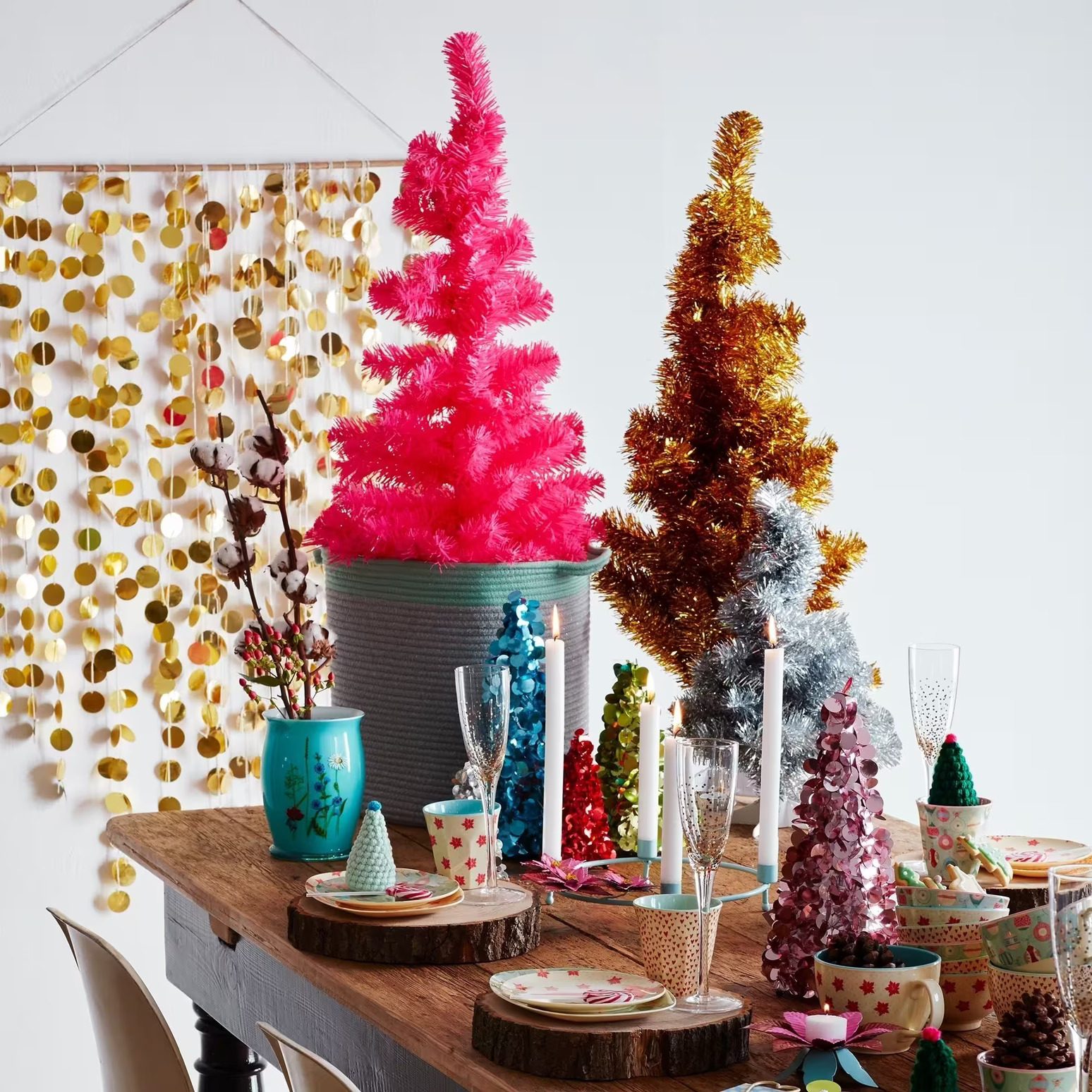 Julgran i plast i en härlig neonrosa färg från danska Rice. Mått: 90 x 45 cm.