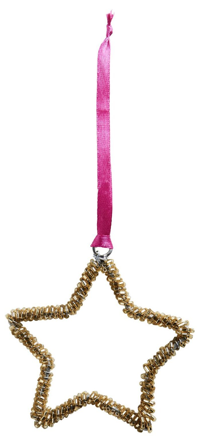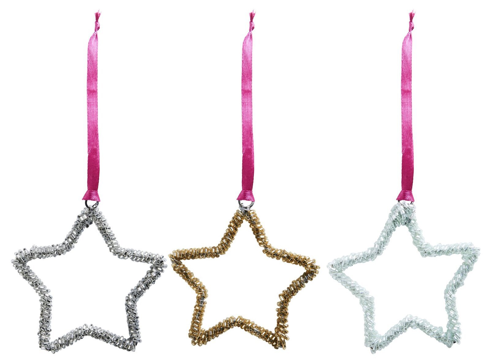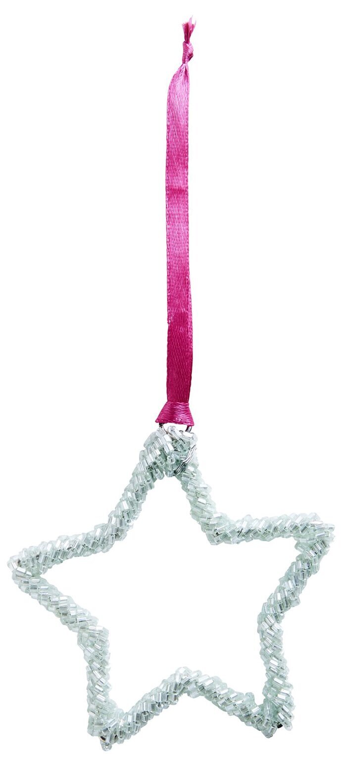 Vacker stjärna att dekorera julgranen med, tillverkad av små vackra pärlor. Finns i tre olika varianter. Mått: 9 x 8,5 cm.