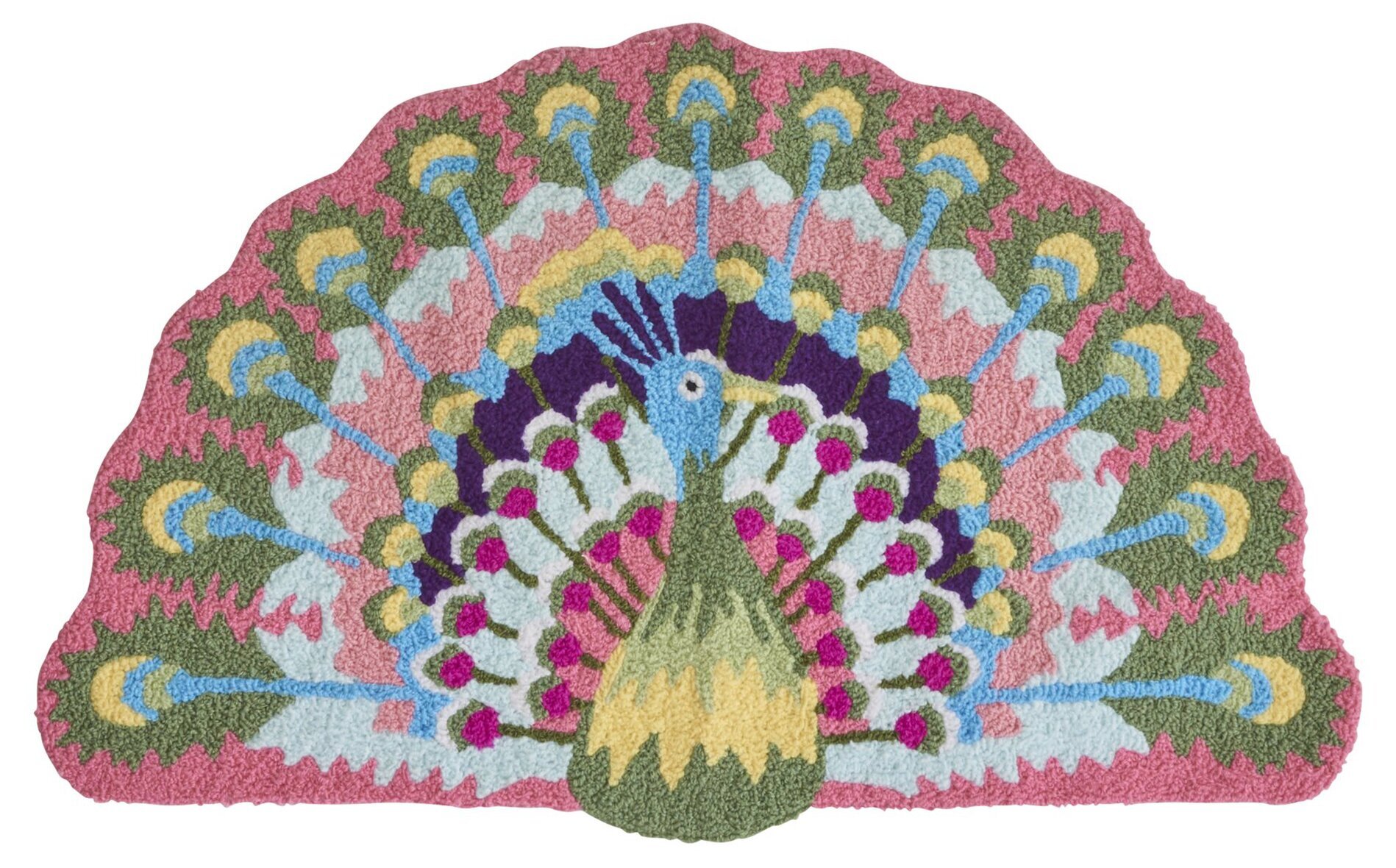 Vacker påfågelmatta i en alldeles underbar färgkombination från Rice, tillverkad i 80% akryl och 20% polyester. Gummerad baksida så mattan ligger på plats och ej halkar iväg.