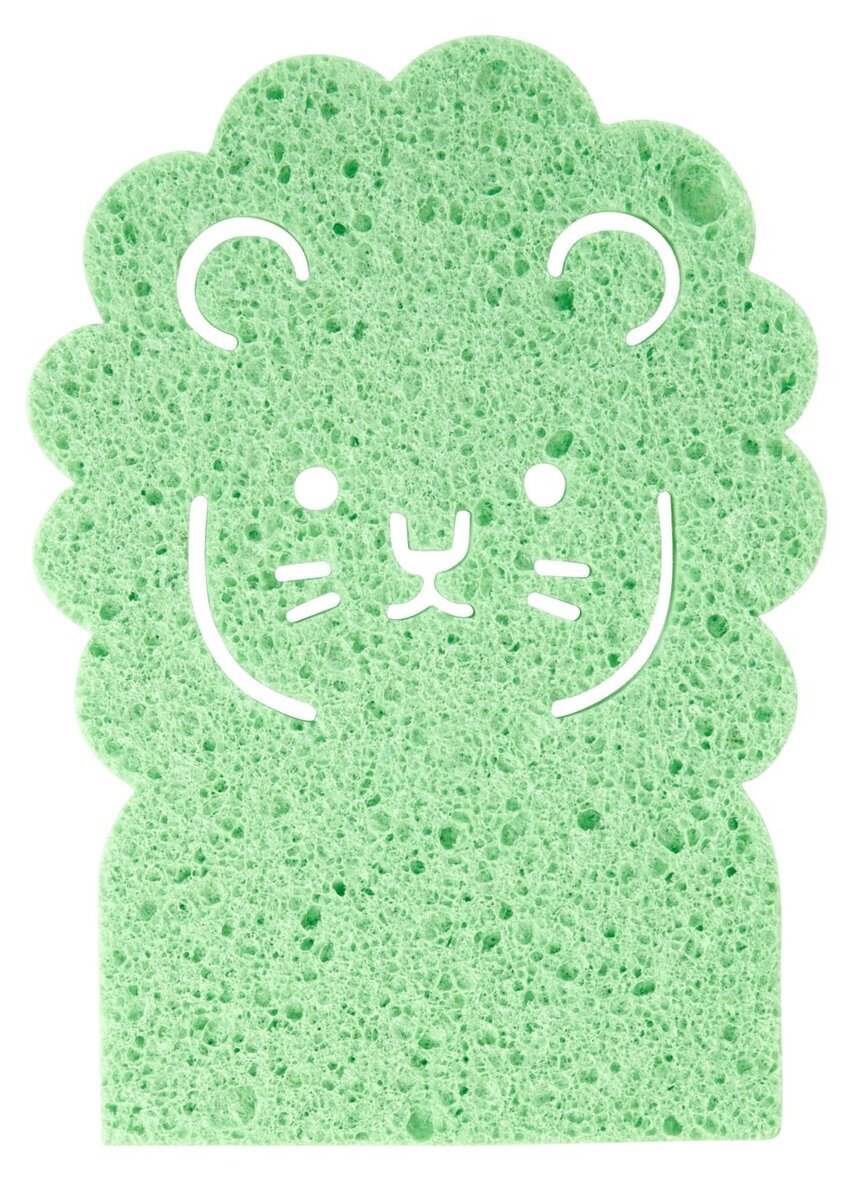 Bilden visar en bad- och kökssvamp från varumärket Rice, tillgänglig hos Köpstaden.se. Den här svampen har en unik och lekfull form som föreställer ett lejon. Svampen är gjord i en klargrön nyans som drar uppmärksamhet till dess detaljrika utformning. Ytan har en porös struktur, vilket är typiskt för en svamp, och ger den en optimal förmåga att absorbera vatten och tvål för effektiv rengöring.