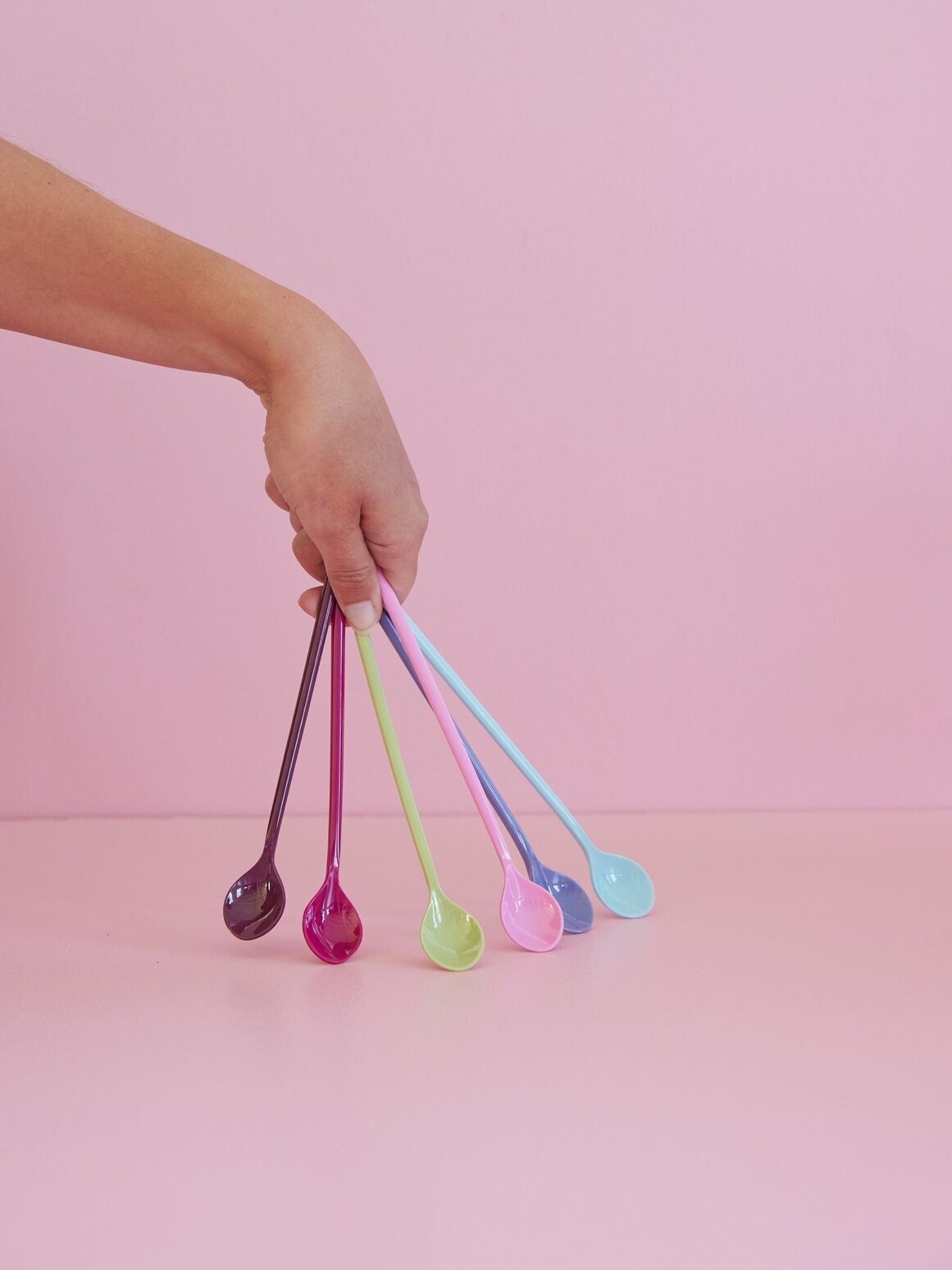 Långa skedar i melamin, set om 6 stycken från Rice kollektion Viva La Vida. Godkända för livsmedel.