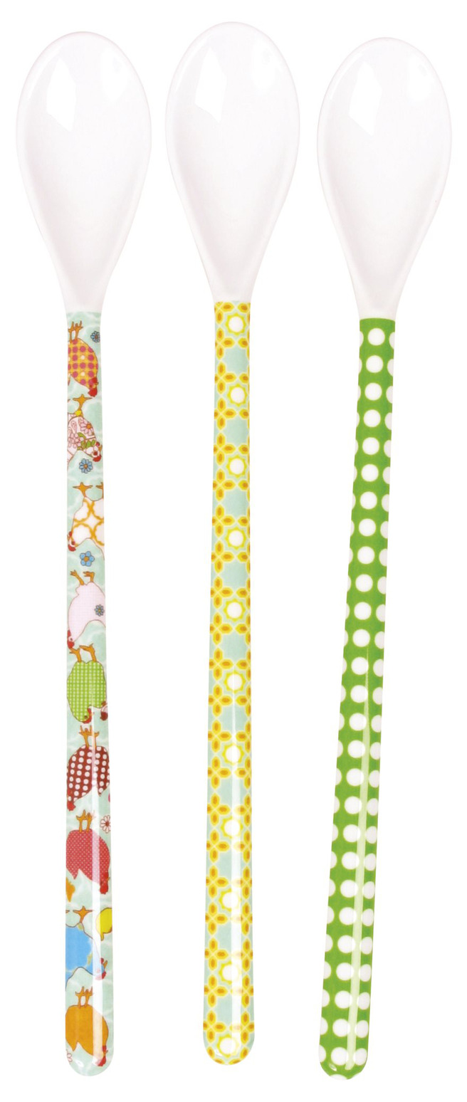 Lång melaminsked som finns i 3 olika färger/mönster. Tål maskindisk men ska ej användas i micro. Godkänd för livsmedel. Mått: 22 cm. Läs mer