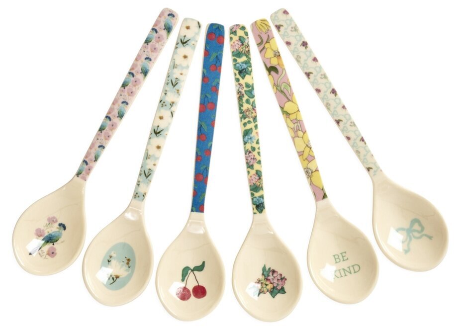 Underbara melaminskedar från Rice med vackra mönster och motiv som lyfter varje fika- eller dessertstund. Setet innehåller sex skedar med olika färger, blommor och charmiga detaljer – perfekt för att sätta lite extra guldkant på vardagen. Perfekta till glass, tårta, frukt, eller varför inte till en vacker present. Ett set som sprider både färg och glädje.