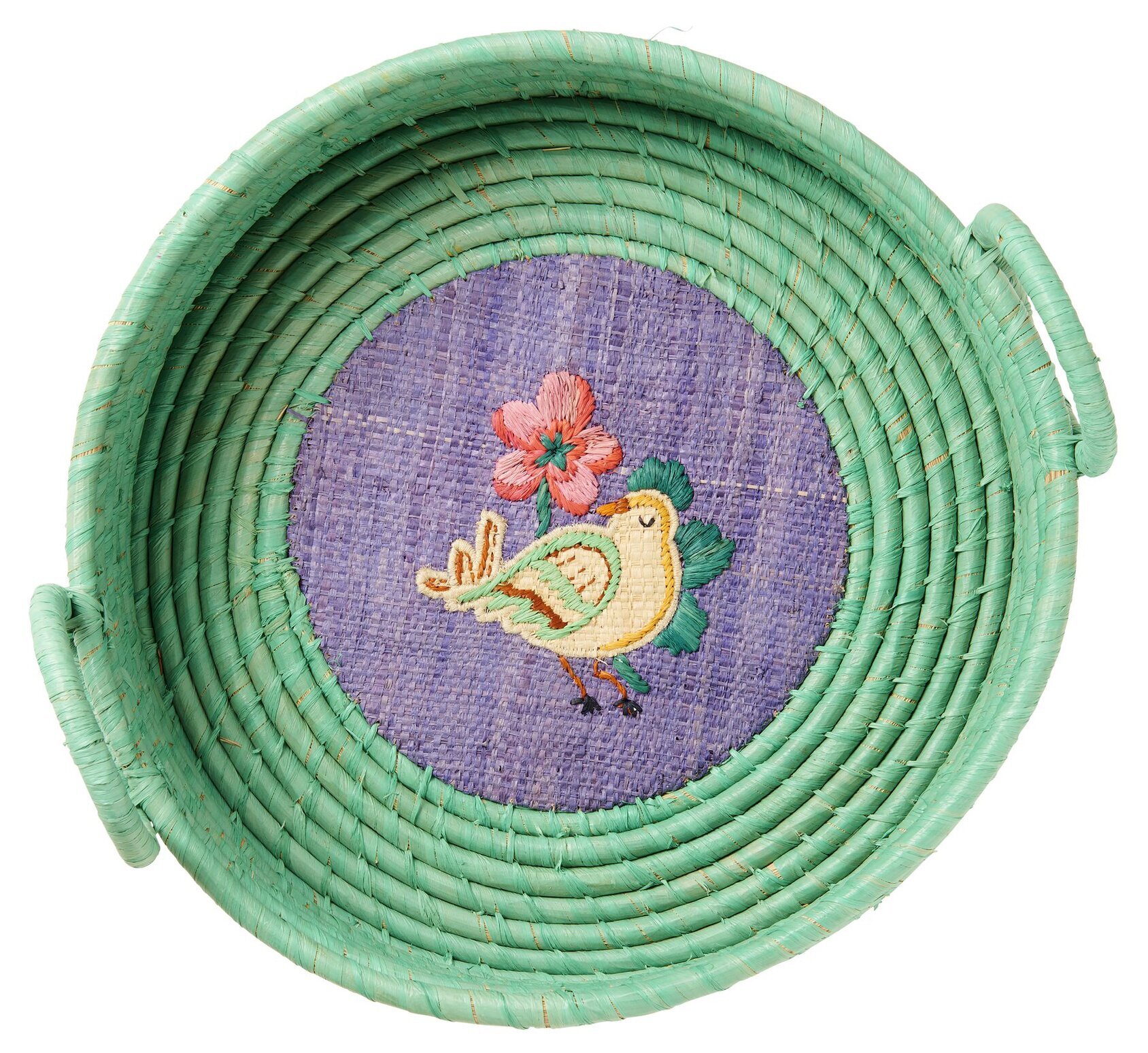 Brödkorg som finns i 2 olika utföranden, kan användas som brödkorgar, smyckeskorgar eller varför inte förvara nycklar och annat som man har liggandes framme. Korgarna är tillverkade av raffiafiber som kommer från palmblad från Madagaskar. Inne i korgen finns det hand-broderade svanar.