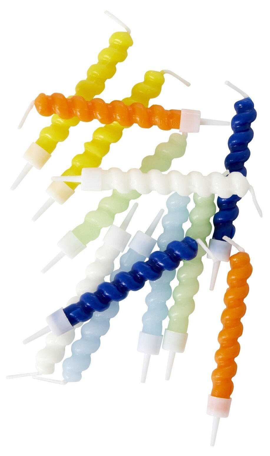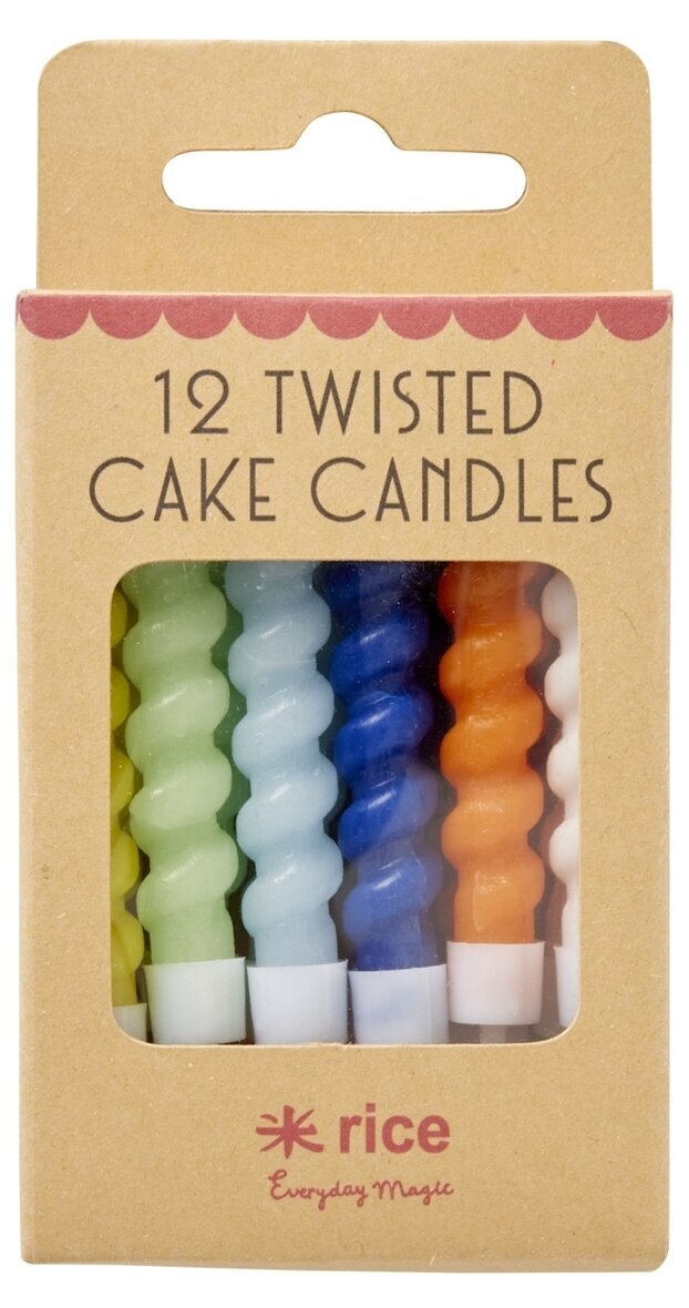 Dekorativa tårtljus i skruvad design, kommer i förpackning om 12 stycken, från Rice.