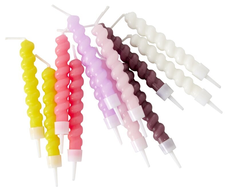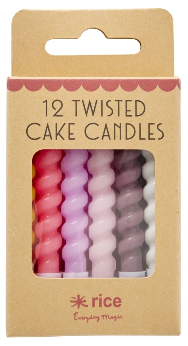 Dekorativa tårtljus i skruvad design, kommer i förpackning om 12 stycken, från Rice.